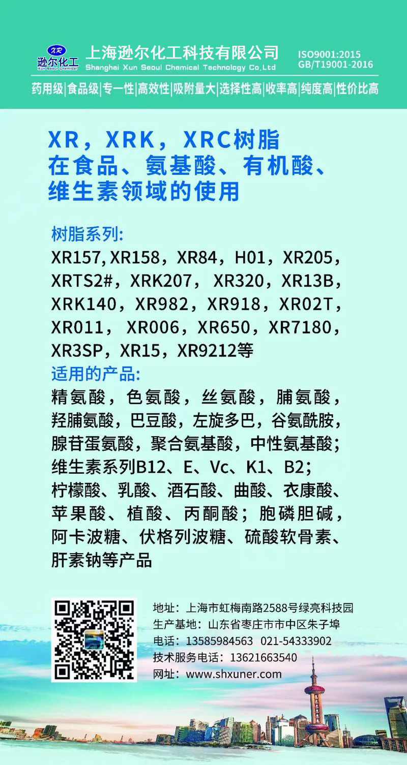 上海遜爾化工科技有限公司是上海市新型的高分子材料研發、生產、應用相結合的高科技公司。公司具有完善的自主知識產權創新體系,與華東理工大學,江南大學,浙江工業大學等科研應用平臺合作從事離子交換與吸附樹脂研制、生產和生物醫藥合成與分離工藝,三廢處理工藝開發設計工作。